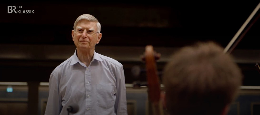 It is a singular pleasure to accompany this great Swedish-American conductor, Herbert Blomstedt, here (2015) at age 87, on three 4th Symphony rehearsal days with the fabulously performing Bavarian Radio Symphony Orchestra in the Munich Residenz “Hercules Hall”. He sings a lot, insists on being faithful to the text and has very precise ideas that he knows how to carry through in a usually kind manner. Besides in his own interview and in front of the orchestra, some of the orchestra’s musicians also have their say. They love and admire him, know that without any “antics” he is one of the greatest. We hear the speaker off-screen: Strictly speaking, here is a singular tribute to this great artist who is ever and only concerned with the matter of the music itself.