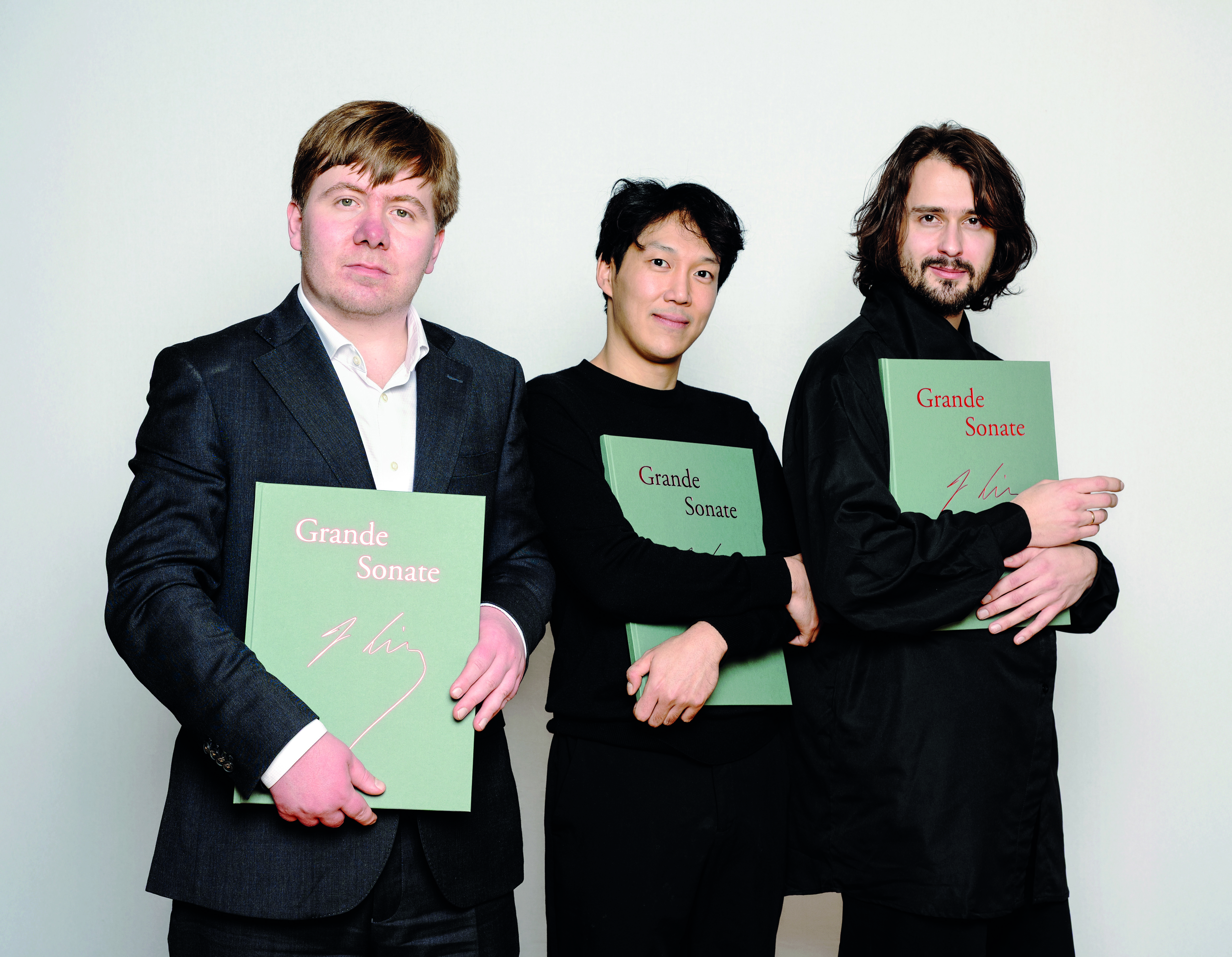 The winners of the Liszt Piano Competition 2026 in Utrecht (Netherlands) proudly present their facsimiles of Franz Liszt's famous manuscript of his piano sonata in B minor from G. Henle Verlag. From left to right: Thomas Kelly (2nd prize), Kang Tae Kim (3rd prize) and Alexander Kashpurin (1st prize and Audience Award).